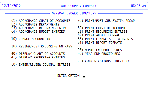 Software systems for retailers ![]() | Home | Overview | Inventory | Receivables | Sales Processing | Payables | Purchasing | Payroll | Accounting | Testimonials | Contact Us | : ![]() ![]() ![]() ![]() ![]() General Ledger : Hover mouse over for more information. ![]() ![]() ![]() ![]() ![]() ![]() ![]() ![]() obs, obsinfotech, obs information technologies, obs management system, accounting page![]() Please Contact Us for more information about the OBS Management System or to schedule an on-line demonstration. |